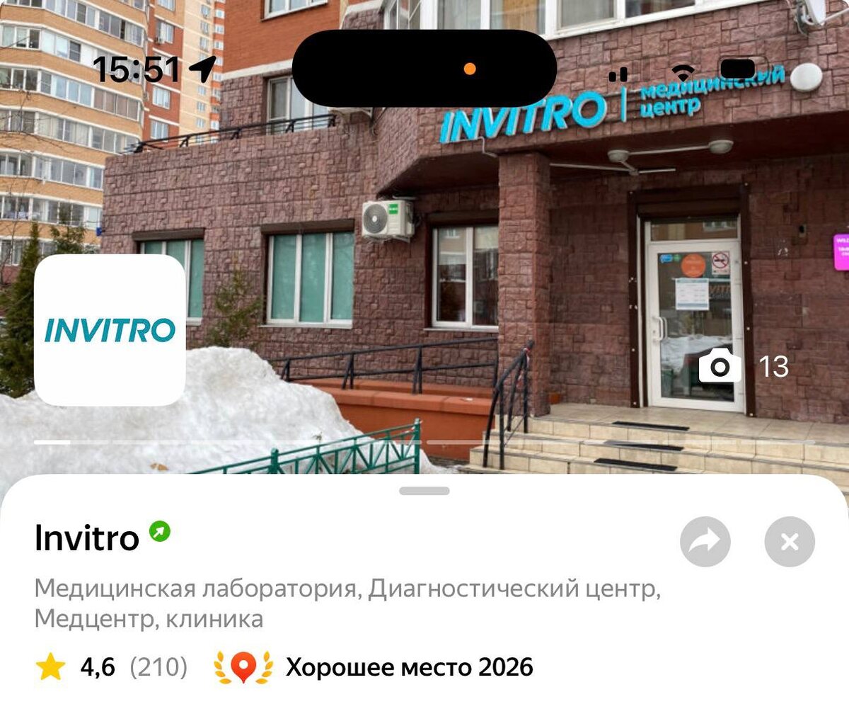 Мы получили Хорошее место 2026 в ЯндексКартах Инвитро Балашиха. Приятно. Команда умнички! За 2 месяца ни одного негативного отзыва.