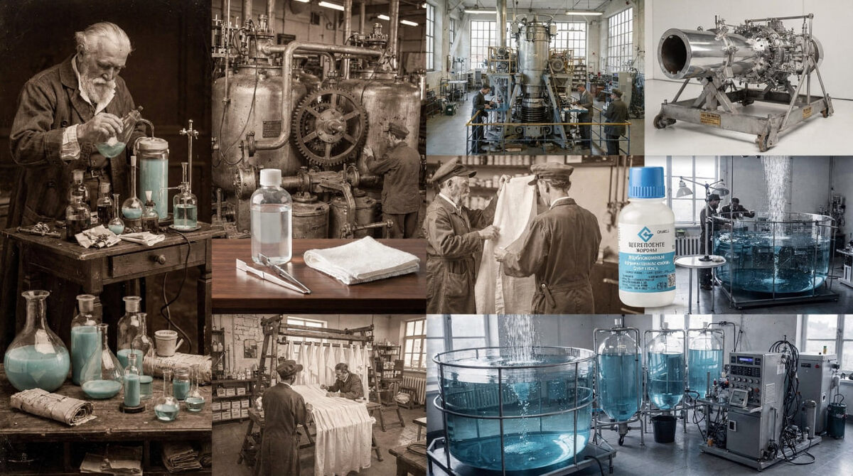ΠΈΠΌΠΈΠΊΠΎΠΌ ΠΡΠΈβΠΠ°ΠΊΠΎΠΌ Π’Π΅Π½Π°ΡΠΎΠΌ. ΠΠ½ ΠΏΠΎΠ»ΡΡΠΈΠ» Π΅Ρ, Π΄Π΅ΠΉΡΡΠ²ΡΡ ΡΠ°Π·Π±Π°Π²Π»Π΅Π½Π½ΠΎΠΉ ΡΠ΅ΡΠ½ΠΎΠΉ ΠΊΠΈΡΠ»ΠΎΡΠΎΠΉ Π½Π° ΠΏΠ΅ΡΠΎΠΊΡΠΈΠ΄ Π±Π°ΡΠΈΡ. Π‘Π½Π°ΡΠ°Π»Π° Π²Π΅ΡΠ΅ΡΡΠ²ΠΎ Π½Π°Π·ΡΠ²Π°Π»ΠΈ Β«ΠΎΠΊΠΈΡΠ»Π΅Π½Π½ΠΎΠΉ Π²ΠΎΠ΄ΠΎΠΉΒ». ΠΠΎΠ½Π°ΡΠ°Π»Ρ Π΅Π³ΠΎ ΠΏΡΠΈΠΌΠ΅Π½Π΅Π½ΠΈΠ΅ Π±ΡΠ»ΠΎ ΠΎΠ³ΡΠ°Π½ΠΈΡΠ΅Π½ΠΎ - ΡΡΡΠ½ΡΠ΅ ΠΈΠ·ΡΡΠ°Π»ΠΈ ΡΠ²ΠΎΠΉΡΡΠ²Π° ΠΈ ΠΏΡΡΠ°Π»ΠΈΡΡ ΠΏΠΎΠ½ΡΡΡ, ΠΊΠ°ΠΊ ΠΈΡΠΏΠΎΠ»ΡΠ·ΠΎΠ²Π°ΡΡ Π½Π΅ΠΎΠ±ΡΡΠ½ΡΠΉ ΡΠΎΡΡΠ°Π². Π Π½Π°ΡΠ°Π»Π΅ XX Π²Π΅ΠΊΠ° ΠΎΡΠΊΡΡΠ»ΠΈ ΡΠΏΠΎΡΠΎΠ± ΠΏΡΠΎΠΌΡΡΠ»Π΅Π½Π½ΠΎΠ³ΠΎ ΠΏΠΎΠ»ΡΡΠ΅Π½ΠΈΡ ΠΏΠ΅ΡΠ΅ΠΊΠΈΡΠΈ ΡΠ΅ΡΠ΅Π· ΡΠ»Π΅ΠΊΡΡΠΎΠ»ΠΈΠ·, ΡΡΠΎ Π΄Π°Π»ΠΎ ΡΠΎΠ»ΡΠΎΠΊ ΠΊ ΠΌΠ°ΡΡΠΎΠ²ΠΎΠΌΡ ΠΏΡΠΈΠΌΠ΅Π½Π΅Π½ΠΈΡ. Π£ΠΆΠ΅ Π² 1920β1930βΡ