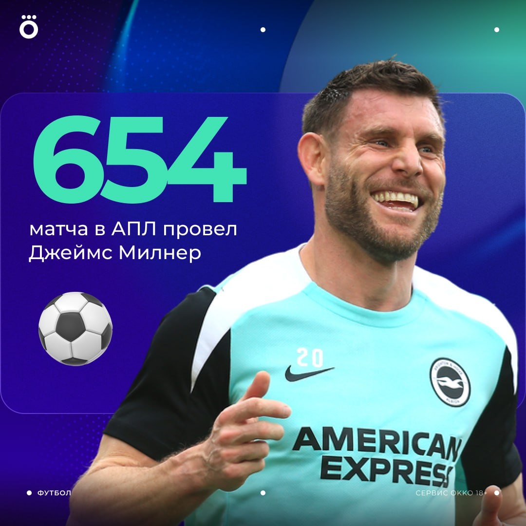 👑 Милнер — рекордсмен АПЛ по количеству матчей. Теперь у Джеймса 654 игры в лиге.