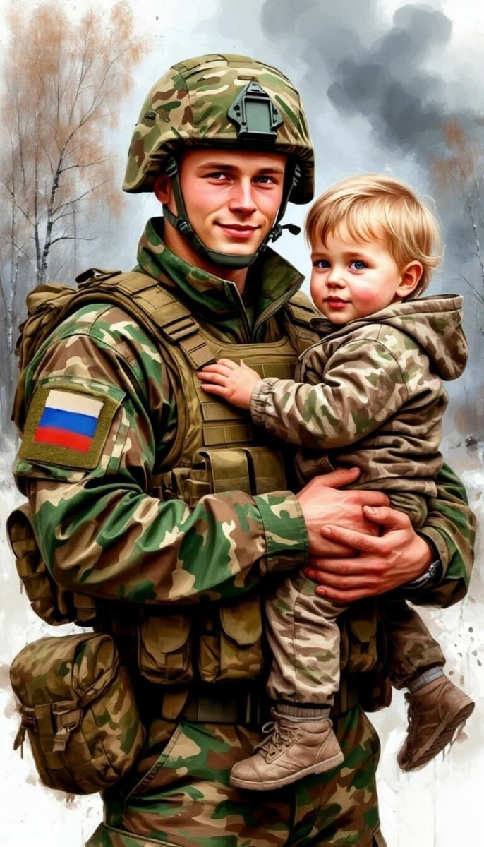 Сосед вернулся с СВО, По возрасту мне - внук. Его сынишке повезло - Дождался добрых рук. Теперь с отцом глаза в глаза, Кудрявый вьется чуб. А мама рядышком в слезах - Сдержать не может чувств. Муж добровольцем уходил, Собрав тугой рюкзак. Она же из последних сил Держалась кое-как. И только Вовка не спеша С дивана сполз и сам Свой сделал первый в жизни шаг К протянутым рукам. Отец сынишку подхватил, Поднял над головой. Как взрослому он говорил: "Жди, сын! Вернусь домой! Расти надежным мужиком. Не дай в обиду мать. Мне приказал мой военком Достойно воевать". Три трудных года измерял Листками календарь. А Вовка рос и папку ждал, Вдыхая с писем гарь. Растил его шестой подъезд Всем миром, так сказать: Как развивается, что ест, Нуждается ль в чем мать? А на войне как на войне: Бомбежки, смерть и кровь. Но ведь отцу дана вдвойне Сынишкина любовь! Он был не раз изранен так - Лишь госпиталь спасал. А Вовкин первый в жизни шаг В атаку поднимал. Солдат вернулся с СВО - Достойный предков внук
