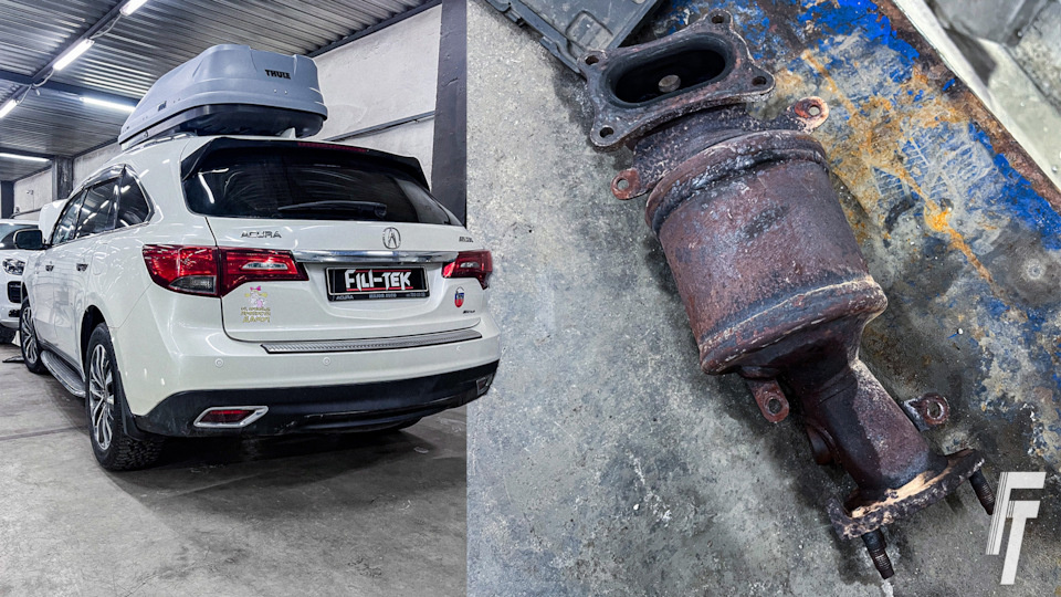 К нам обратился владелец Acura MDX с классической жалобой: на приборной панели загорелся Check Engine. Сканер показал ошибку P0420 – «Эффективность каталитического нейтрализатора ниже порогового значения». Ситуация стандартная, но когда мы начали разбираться, вскрылись интересные детали. Клиент заметил и ещё одну проблему: от двигателя появился неприятный запах выхлопных газов, чего раньше не было. Это уже указывало на то, что катализатор не просто выдаёт ошибку, а работает неправильно физически. Вскрытие показало: предыдущая экономия