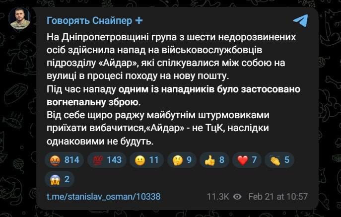 🖕 На боевиков нацистского батальона «Айдар» совершенно вооружённое нападение в Днепропетровской области