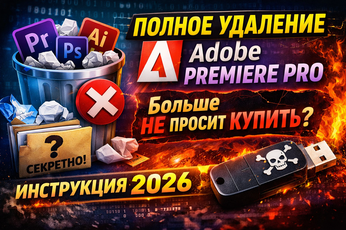 Если при переустановке Adobe Premiere Pro появляется ошибка лицензии, программа требует покупку или не запускается — значит в системе остались файлы и службы Adobe. Ниже — пошаговая инструкция полной очистки.