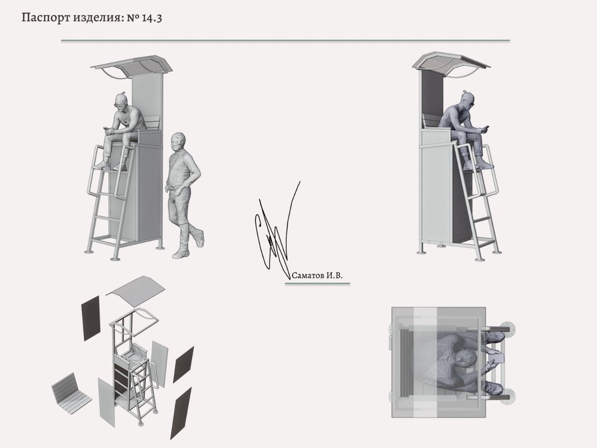 Какая же банальщина! Тьфу…🥲 Я ведь не один думаю о удобстве на работе? Это я задался вопросом - после того, как осознал, сколько времени потратил на вникание в тему, - какой должна быть сидушка под полную посадку, чем отличается «рабочее положение» от «я отдыхаю». Хех - оказывается, рисую я чертежи в отдыхательном положении. В общем, потом я направился щупать лавочки в городе и тыкать в них рулеткой… То ещё зрелище. Я просто не мог не проверить самостоятельно - в итоге да, угол 5 /110 градусов, нормальный для посиделок. А тут виновник моего беспокойства - спасательная вышка! 🖤 #эскиз@CenzykT_G