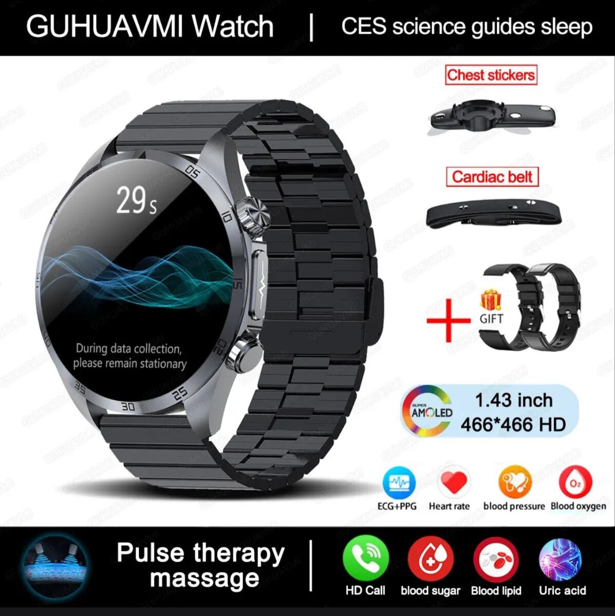 Bluetooth-звонок, электрокардиограмма (ЭКГ), функция микрофизического обследования, определение вариабельности сердечного ритма (ВСР), определение эмоций, определение усталости, неинвазивный мониторинг уровня сахара в крови, измерение компонентов крови