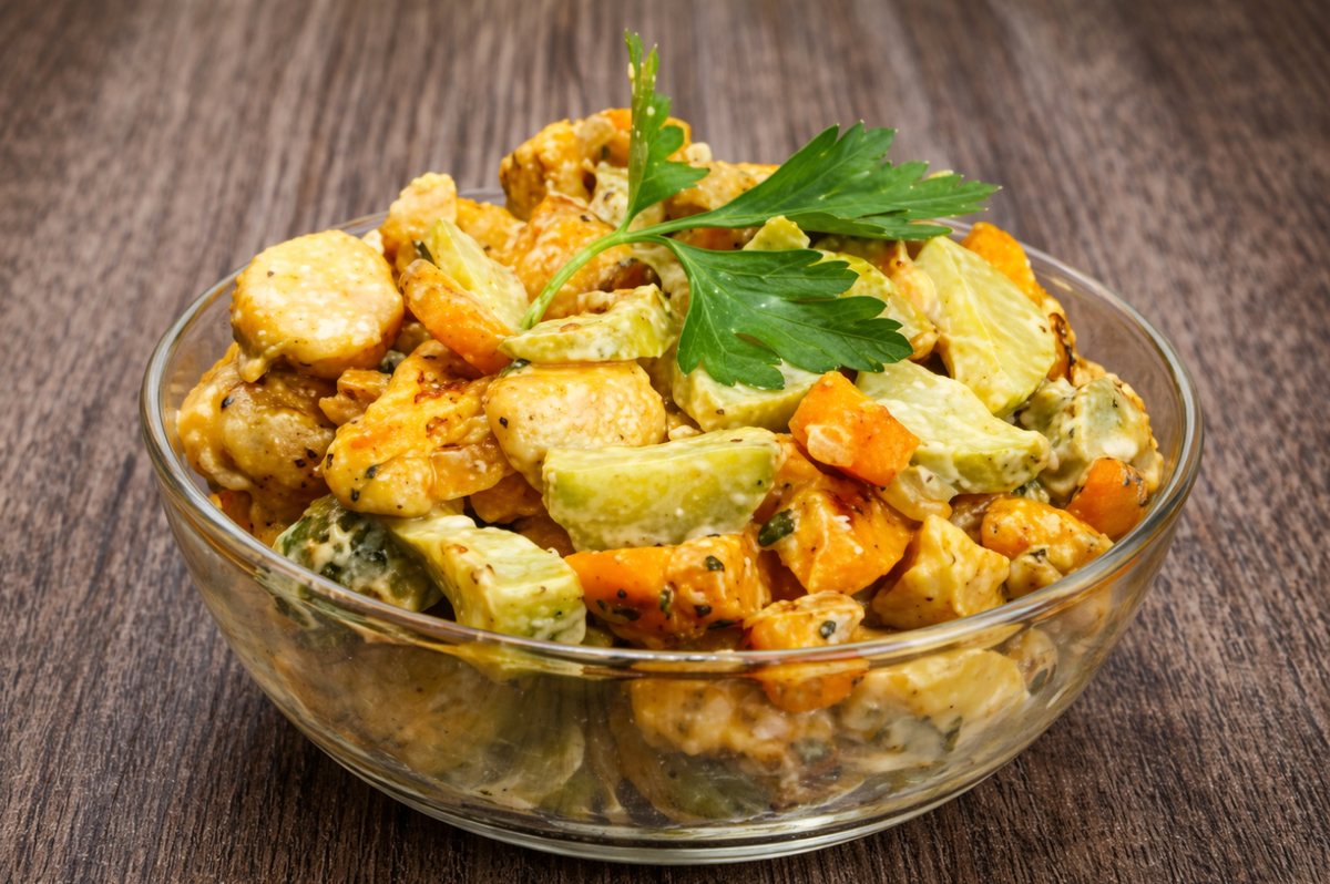 Долгое время я пыталась найти этот рецепт: расспрашивала знакомых, листала кулинарные сайты, сохраняла заметки. И когда наконец приготовила его дома, поняла — искала не зря. Этот салат оказался настолько вкусным и гармоничным, что теперь я готовлю его практически на каждый семейный праздник. Более того, если хочется порадовать близких чем-то необычным, но при этом простым, «Лилия» всегда выручает. В нем удивительно сочетаются нежная курица, сладость ананаса, легкая кислинка маринованных огурчиков и мягкая сладость варёной моркови. Всё это объединяется майонезом и ароматом свежей петрушки. Получается очень нежный, сочный и в то же время сытный салат, который нравится и взрослым, и детям. Существует несколько версий происхождения названия салата. Чаще всего салат оформляют в виде цветка — сверху украшают веточками петрушки и аккуратно выкладывают ингредиенты так, чтобы они напоминали лепестки лилии. Смотрится он очень красиво и празднично, поэтому отлично подходит для праздничного сто