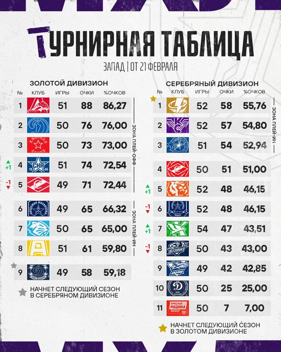 Западные движения: отмечен рост на одну строчку у «СКА-1946», «Амурских Тигров» и «Капитана»