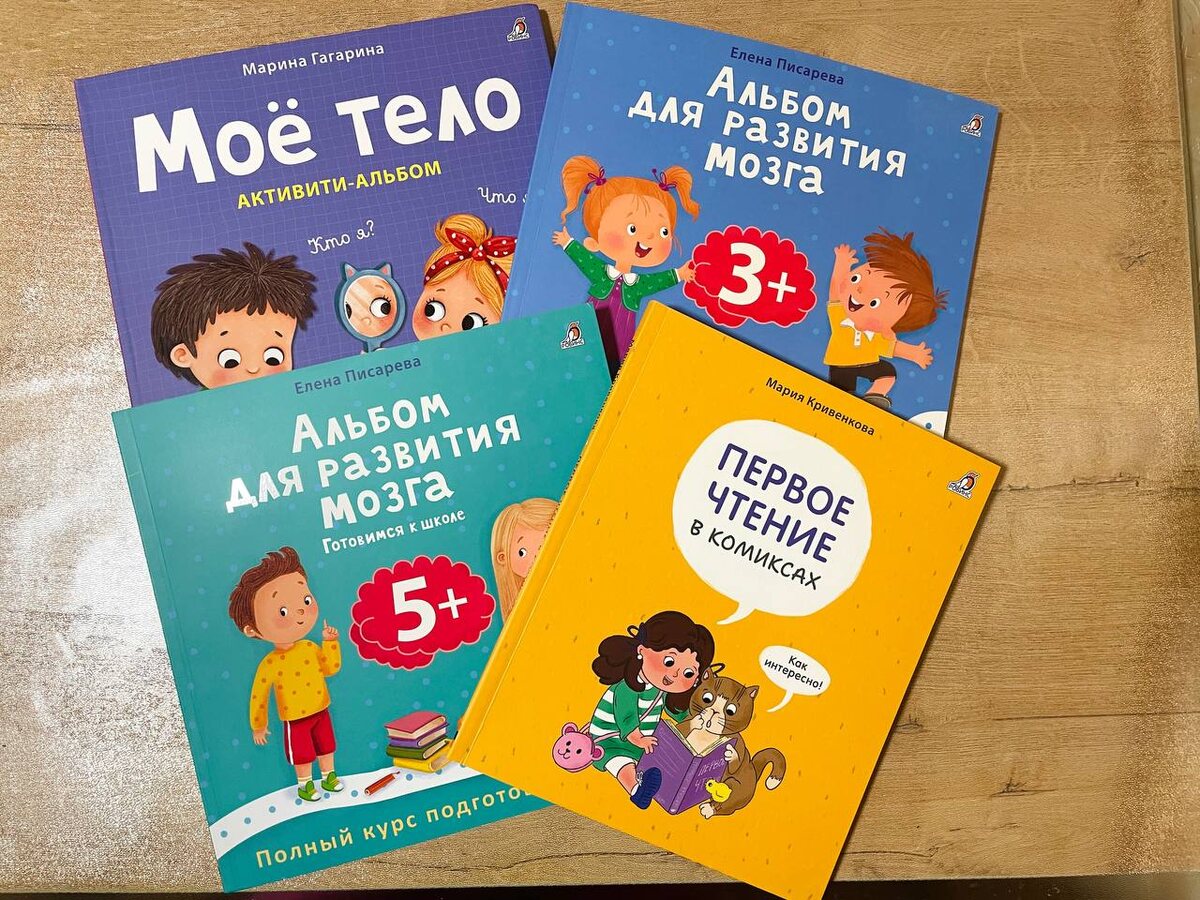 ». Подбирала их по возрасту: для Сашеньки (3 года) и для Анечки (5 лет). Каждому — своё, и каждое — настоящая находка. 1. Для Саши (3 года) — «Моё тело. Активити-альбом» (2+) Это отличная книга для возраста «почемучки», когда главный объект изучения — он сам. Альбом не просто знакомит с частями тела, а через игры и задания помогает понять, как мы устроены и как взаимодействуем с миром. Для меня это не просто анатомия, а важный шаг к осознанию себя. 2. Наш ежедневный вечерний минимум с Сашей — «Альбом для развития мозга» (3+) Этот альбом стал для нас с сыном отличным инструментом для комплексного развития без лишней нагрузки. Здесь всё продумано: начинаем с пальчиковой и дыхательной гимнастики, далее переходим к нейрогимнастике и веселым заданиям на внимание, а также развиваем эмоциональный интеллект. Как маме, мне очень нравятся подробные комментарии для родителей — не нужно ничего придумывать, просто открывай и занимайся. 3. Для Ани (5 лет) — «Альбом для развития мозга. Готовимся