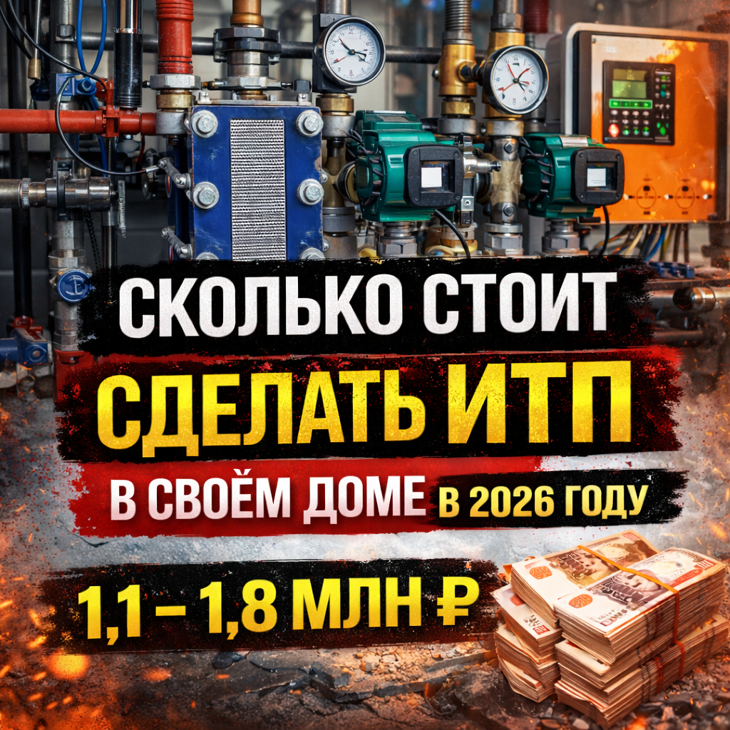 Если длинно — сейчас разберём, сколько он реально стоит и где чаще всего «утекают» деньги. ИТП (индивидуальный тепловой пункт) — это узел, который: В частном доме ИТП чаще всего ставят, если: Если у вас обычный газовый котёл 120 м² без излишеств — полноценный ИТП может быть избыточен. Но элементы ИТП всё равно будут. Возьмём дом 200–300 м² с подключением к тепловой сети. 80 000 – 180 000 ₽ Зависит от: Без проекта подключение просто не согласуют. 120 000 – 350 000 ₽ 80 000 – 250 000 ₽ 100 000 – 300 000 ₽ 70 000 – 150 000 ₽ 60 000 – 200 000 ₽ 💰 Итого оборудование: