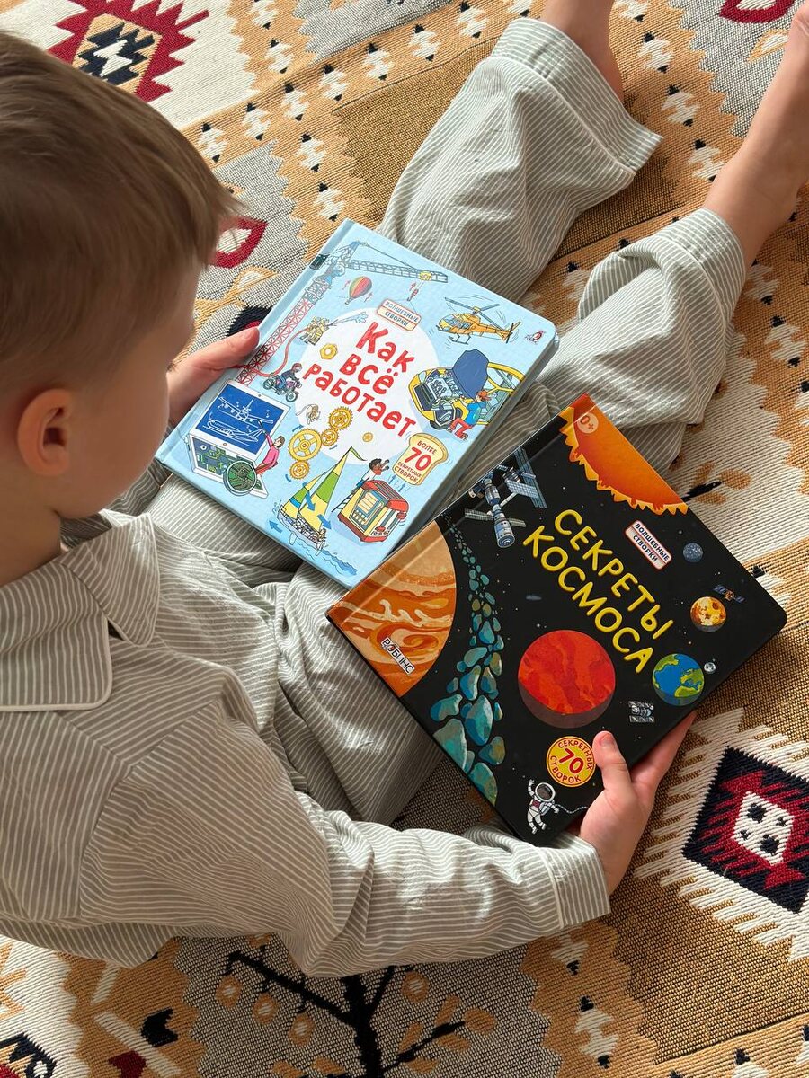 🐥 🟠🟤⚪️🔵🟠🟤⚪️🔵🟠 Та самая серия, за которой сейчас охотятся на Авито🙈 (издательство пока перестало выпускать эти легенды) У нас дома живёт «Секреты космоса» - книге уже 12 лет! Досталась от моего младшего брата и теперь перекочевала в библиотеку уже моих детей. Недавно появилась «Как всё устроено» - и это хит. Механизмы, техника, «а что внутри?» - заходит и мальчикам, и девочкам. Фишка серии - окошки. Открываешь - и там ещё слой, ещё секрет. И да, «Секреты человека» из розыгрыша из этой же серии 👌