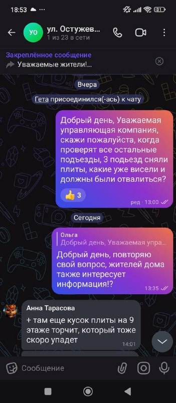 Инцидент произошел днем 17 февраля около дома №36 по улице Остужева. Плита пробила асфальтовое покрытие. К счастью, пострадавших нет — в момент падения вблизи не оказалось людей. Управляющая компания «Олимп» оперативно убрала упавшую плиту и демонтировала еще две аналогичные конструкции. Однако представители компании отказались осматривать остальные подъезды здания, несмотря на опасения жильцов о наличии аналогичных рисков. Жители дома выражают обеспокоенность бездействием управляющей организации и подчеркивают необходимость срочных мер для предотвращения новых обрушений.