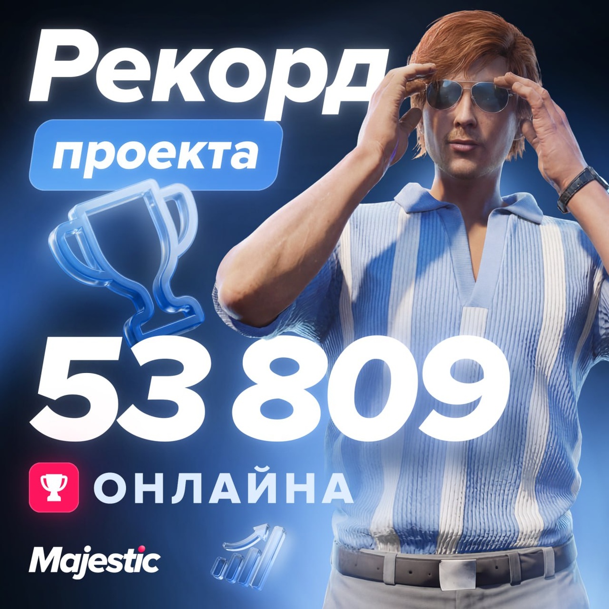 Для Majestic RP выходить на новые высоты уже стало традицией: наш онлайн достиг впечатляющей отметки в 53 809 игроков. Мы все чаще фиксируем и отмечаем новые рекордные цифры для проекта, и это наше с вами общее достижение 🏆 ❤️ — меня тоже посчитали ❤️ Majestic Role Play