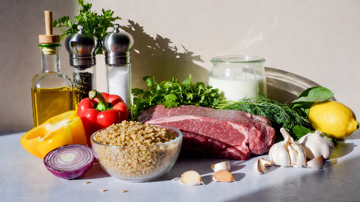 Нежные полоски постного мяса с пряными нотками, сладковатый запечённый перец и освежающий йогуртовый соус. Готовится на одной сковороде + духовка - минимум посуды, максимум белка и удовольствия ✨ Говядина с гарниром: • Постная говядина (вырезка или филе) - 350 г 🥩 • Булгур (сухой) - 120 г • Болгарский перец (красный/жёлтый) - 2 шт. 🌶 • Красный лук - ½ шт. • Оливковое масло - 1 ст. л. • Паприка - 1 ч. л. • Кумин - ½ ч. л. • Соль, чёрный перец - по вкусу Йогуртовый соус: • Греческий йогурт 2% - 3 ст. л. • Чеснок - 1 зубчик • Лимонный сок - 1 ч. л. 🍋 Топпинг: • Свежая зелень (петрушка, кинза или укроп) 🌿 • Дроблёный чёрный перец Запеки перец вместе с мясом в духовке: мясо добавь за 10 минут до конца - получится ещё сочнее и меньше посуды. ~30 минут (из них активных - около 10 минут) ≈ 540 ккал Белки - 40 г Жиры - 18 г Углеводы - 52 г - Без лишнего жира и сахара - натуральный вкус от специй и овощей - Высокий белок от говядины + сложные углеводы от булгура + клетчатка от перца = устойч