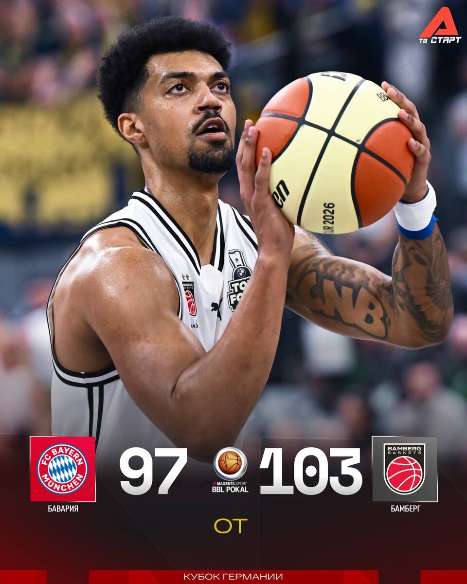 ! Парад трехочковых закончился в пользу «Бамберга». Это был отличный полуфинал — спасибо обеим командам 👏🏻👏🏻👏🏻 Второй немецкий полуфинал смотрите в 21:00 на телеканале «Старт Триумф» 📺 Подписывайся на ТВ СТАРТ в MAX📲