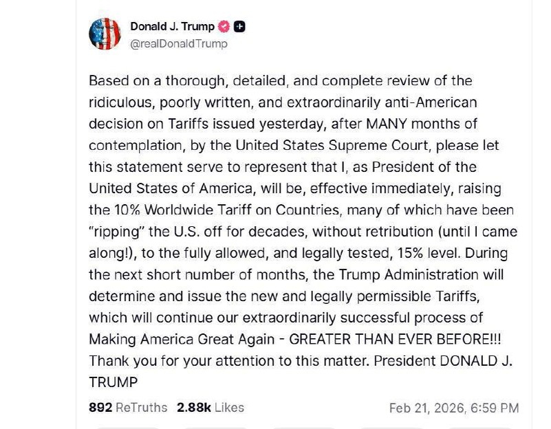 Наглядный пример, каково жить в стране с выстроенными институтами, которые реально работают, а иногда даже друг против друга. Да, это может порождать суматоху на мировом рынке и в жизни простых людей. Зато нет одной ветви власти, которая в одностороннем порядке решает, кому и как жить. Что произошло: Большинством голосов верховные судьи признали, что президент США превысил свои полномочия, когда ввел пошлины по всему миру, сославшись на Закон о международных чрезвычайных экономических полномочиях (IEEPA). Я этому очень рад: Уже много раз говорил, что сам против тарифов, они мне никогда не нравились. По сути, это дополнительный налог на своих же граждан. История про то, что «Америка заставит другие страны платить» — это чисто популизм со стороны Трампа и республиканцев. В итоге платят именно американцы, потому что импорт дорожает, компаниям приходится закладывать эти издержки в цену, и товары становятся дороже. Правительство США в плюсе, а жители — в минусе. Да и в целом тарифы являю