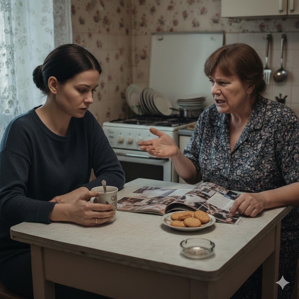 Напротив, подперев щеку рукой, сидела Анна Петровна. Мать выглядела оскорбленной до глубины души. На столе перед ней лежал глянцевый каталог свадебных платьев, который младшая дочь, Катенька, оставила здесь как бы невзначай.