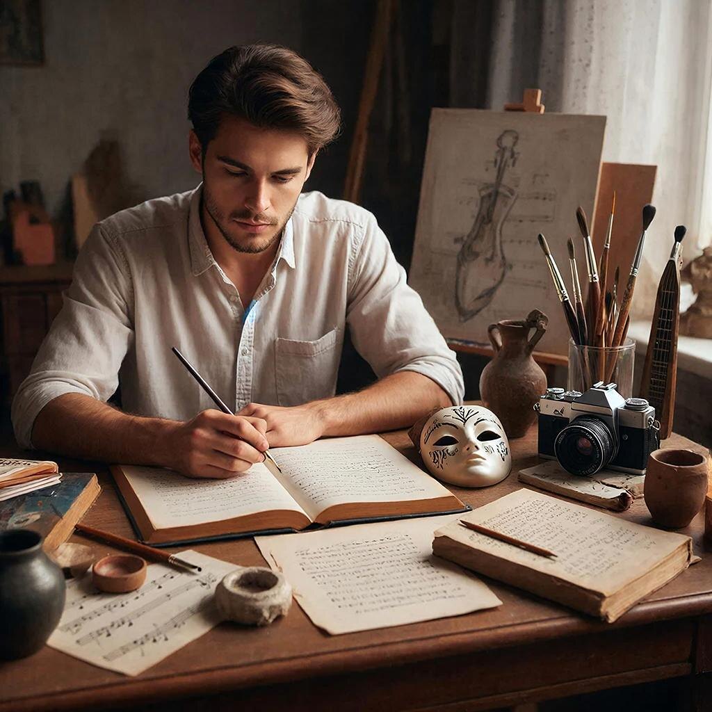 Мы живем в обществе, окруженные людьми и результатами их творчества. Любой материальный объект изначально возник как идея — продукт чьего-то творческого ума. Всё начинается с мысли, идеи, которая выражается в словесной форме и превращается в проекты, программы и другие интеллектуальные конструкции. Затем эти идеи обретают физическую форму: здания, автомобили, книги и прочие чудеса, которыми пользуется наше общество. Чем является творчество? Творчество — это процесс создания новых идей, образов, форм и смыслов, отражающих внутренний мир человека и воплощающихся в материальной или духовной сферах культуры. Оно проявляется в искусстве, науке, технике, литературе, музыке, дизайне и множестве других сфер человеческой деятельности.Человек может заниматься разными видами творчества: созданием игрушек, игрой на музыкальных инструментах, садоводством, живописью, поэзией, прозой и многим другим. Каждому своё!Однако далеко не всех волнуют подобные вопросы. Многих вполне устраивает повседневная жи