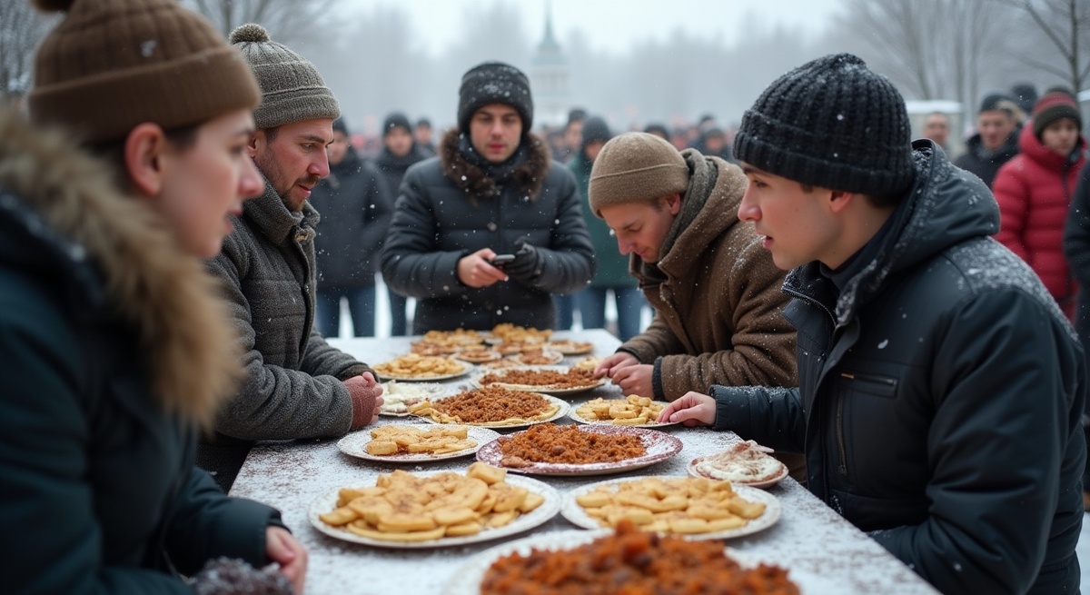 «Это Масленица — пусть блины будут в центре!» — выкрикнул мужчина лет пятидесяти, взмахнув ватником, и тут же услышал в ответ: «Еда объединяет, мы все на одном празднике!» Кто-то включил прямой эфир в паблике района, камера взяла крупным планом толчею в узком проходе. Пару секунд — и лента наполнилась «смотрите, опять ругань», «праздник испортили». Неловкое движение — и уже перевёрнута коробка с пластиковыми тарелками, они разлетелись белыми кругами, как снежные диски. Ребёнок заплакал, мать рывком увела его из толпы, а кто-то крикнул «Осторожно, горячее!», потому что казан качнулся, и несколько зёрен риса с морковью, липких от масла, скатились на снег, оставив янтарные пятна.