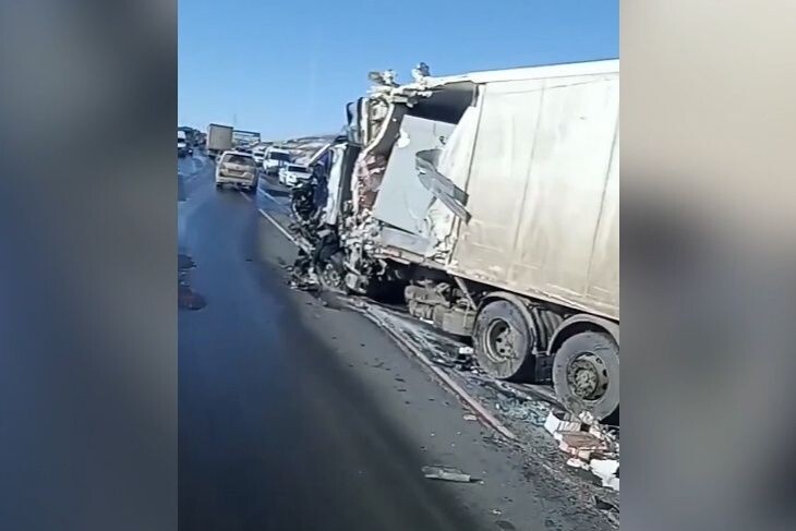 Очевидцы засняли жуткие последствия столкновения фур на трассе под Волгоградом