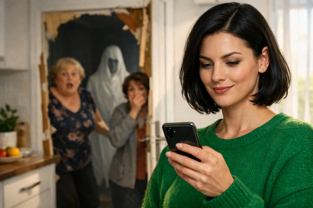 Свекровь, окончательно взбешённая, отступила на шаг, сделала нелепый разбег и всем телом врезалась в дверь. Старая панельная дверь не выдержала. Замок с треском вылетел вместе с куском косяка, створка с грохотом рухнула внутрь. Людмила Борисовна, не успев затормозить, перелетела через порог и шлёпнулась на пол прямо перед неподвижной белой фигурой.