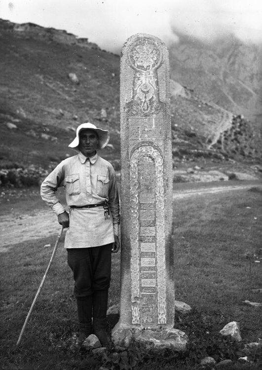Осетин у памятного столба (цырта). Селение Нижний Кани. Северо-Осетинская автономная область, 1920-е годы. (@Alania_media)