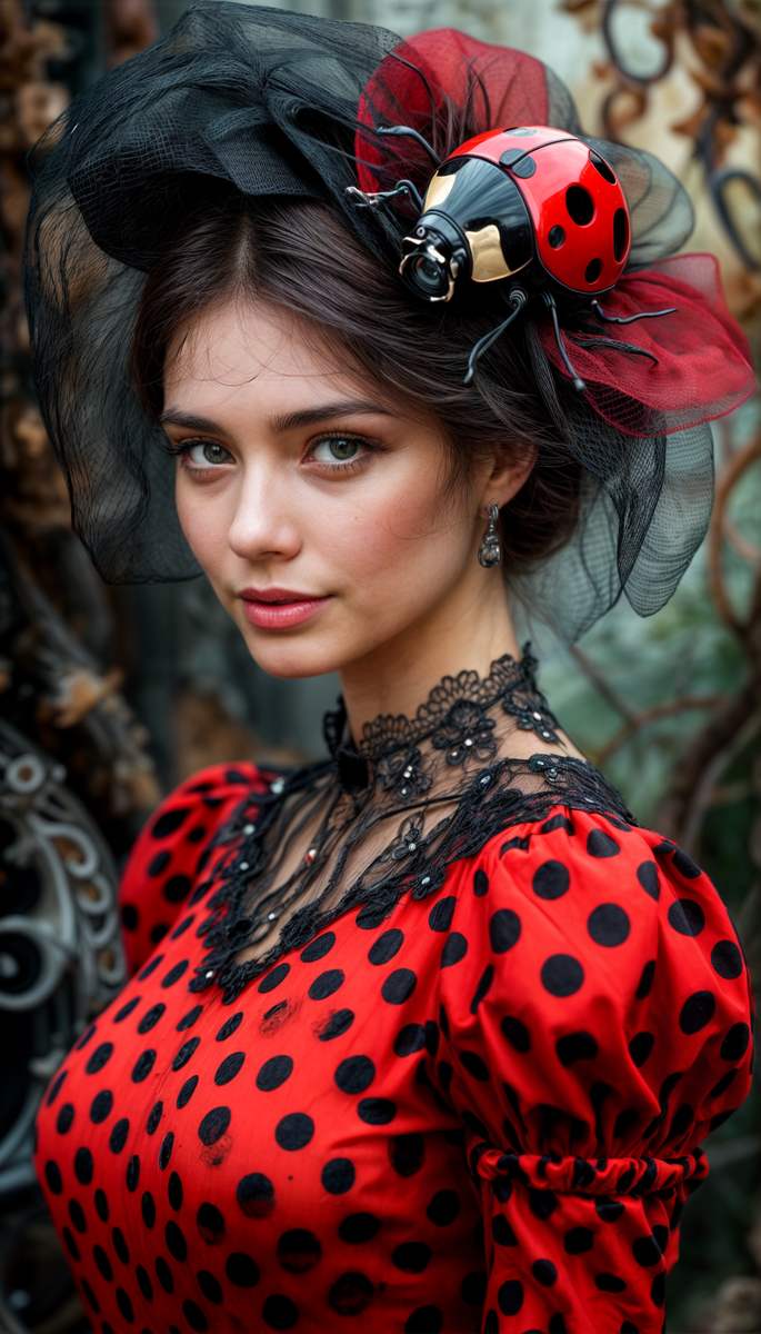 💫Добро пожаловать в мир НейроМагии✨ Сегодня "Она" — дама, чья элегантность говорит языком удачи: шляпка с вуалью, чёрный горошек на алых шелках, напоминающих крылья божьей коровки, улыбка — тихая, как шорох лепестков, но в глазах — глубина лабрадорита, где переливаются все оттенки надежды. И в этом взгляде — приглашение: помни, что удача всегда рядом — особенно когда ты сам становишься её проводником. Промт: Глядя в камеру, сюрреалистический гибрид женщины и божьей коровки, длинное красное платье в черный горошек с кружевом, элегантная шляпка с вуалью, Богиня, улыбка, Венера, нежное лицо, высокодетализированный, резкий, замысловатый, фэнтези, филигрань, драгоценности, туман, замысловатые фоны, лабрадорит, Гигер, драматическое освещение, 32k, UE5, октановый рендеринг, цифровое искусство, концепт-арт, яркий цвета, по центру, приглушенные цвета, акварель Настал момент для души. В НейроМагии красота не требует усилий — только присутствия. Как дыхание. Эти нейроарты сделаны мною, чтобы вд