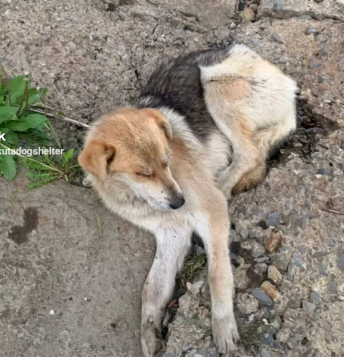 Нашли Малыша несколько лет назад в таком состоянии. Нашли его за пределами города, возле п.Южный у моста. Не вставал, всего в комарах, с больными глазами, что было с ним до - не известно.