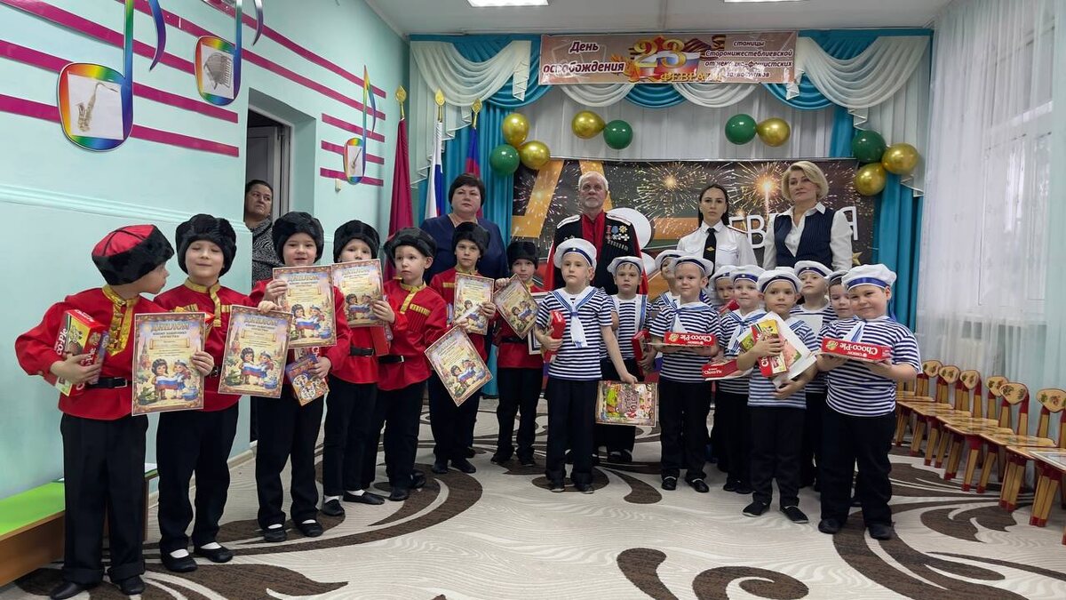 детском саду № 43 прошло тематическое мероприятие. Воспитанники старшей и подготовительной групп показали настоящую удаль: пели патриотические песни, танцевали и соревновались в силе, меткости и ловкости. Почётными гостями праздника стали казак-наставник Старонижестеблиевского станичного казачьего общества Григорий Савельевич Круглый и специалист Красноармейского отделения Союза казачьей молодежи Кубани Ирина Печеная. Все юные участники получили заслуженные награды: от атамана Старонижестеблиевского СКО Дениса Васильевича Агарко ребятам вручили грамоту за активное участие, а от Полтавского районного казачьего общества — сладкие подарки. ↗️ТАМАНСКИЙКАЗАЧИЙ ОТДЕЛ - присоединяйся!
