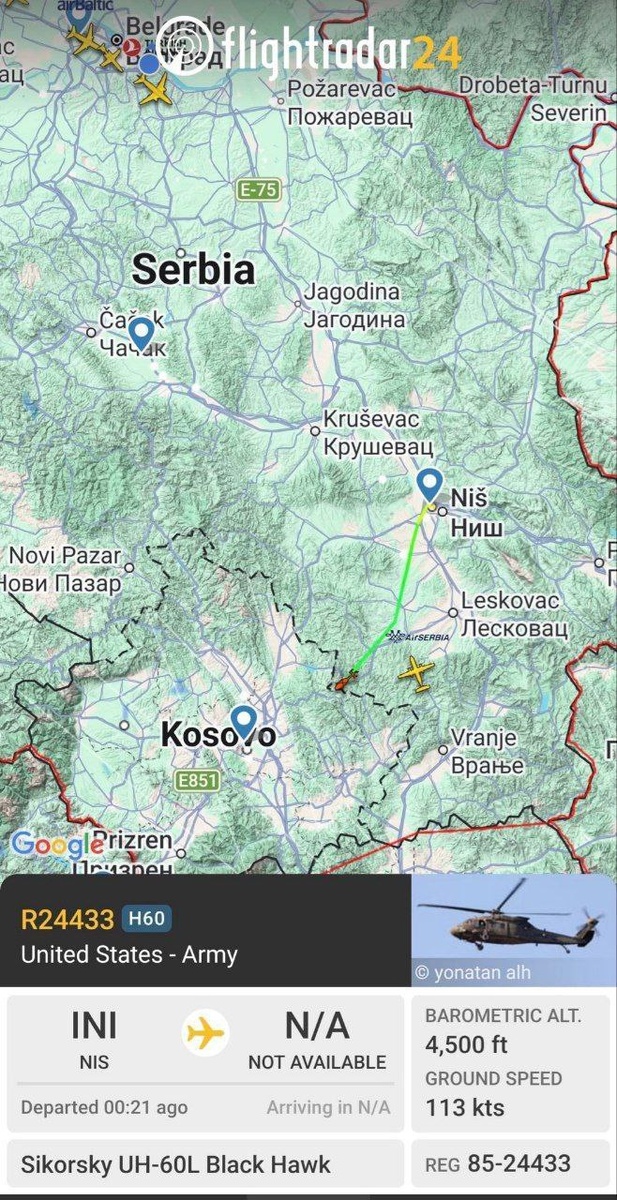 В то время как страны НАТО продолжают вооружать албанских боевиков, американский армейский вертолет Black Hawk вновь приземлился в Нише