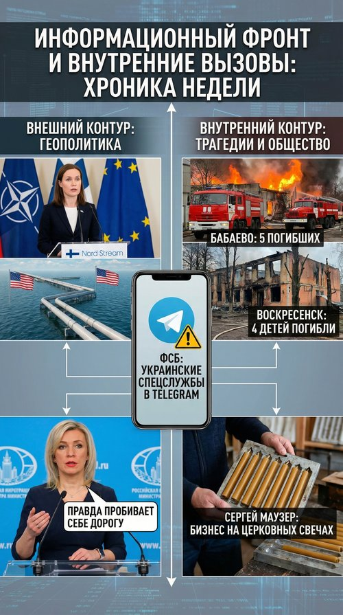 События этой недели показывают многогранность вызовов, стоящих перед страной. На внешнем контуре Россия сталкивается с консолидированной позицией Запада, где Финляндия, ставшая новым членом НАТО, транслирует тезисы об отсутствии у Москвы стратегических успехов. Информационная война смещается в мессенджеры, становясь тотальной. Внутри страны острейшей проблемой остается безопасность граждан — гибель детей на пожарах требует не просто расследований, а кардинального пересмотра подходов к профилактике.