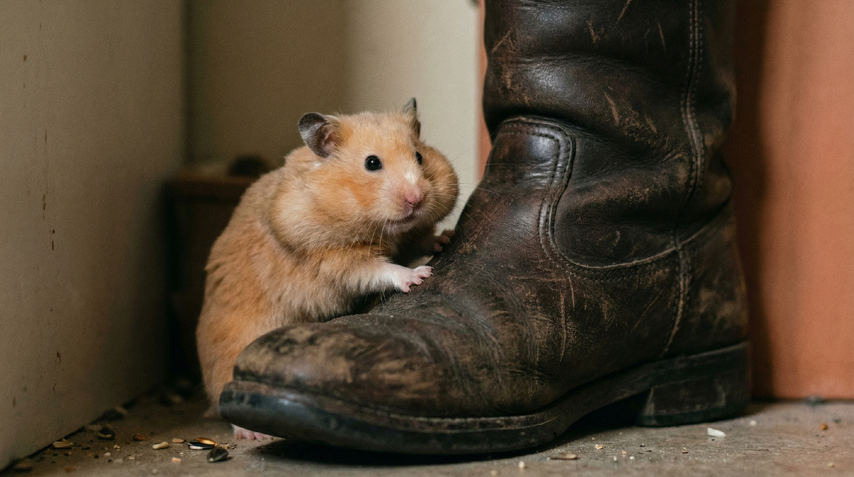 Полина прищурилась. Сапог был высокий, с широким голенищем. Хомяк ловко вскарабкался по потёртой коже, перевалился через край - и исчез внутри.