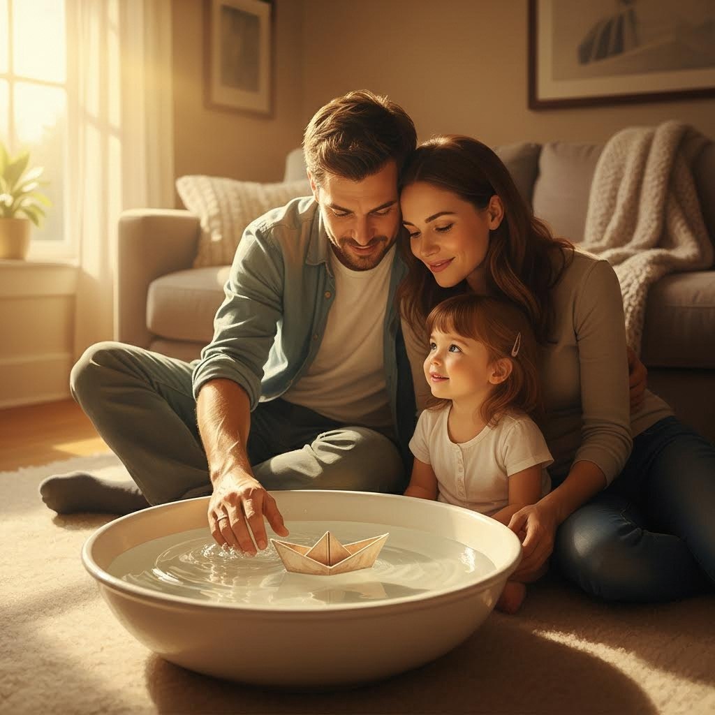 Услышав тихий всплеск, из спальни вышла мама. В халате, с еще сонными глазами, она остановилась в дверях гостиной. Там, на полу, в лужице теплого света, сидели двое самых родных ей людей и смотрели, как бумажный кораблик тыкается носом в края миски. Она тихонько, стараясь не спугнуть это хрупкое мгновение, подошла и села рядом.