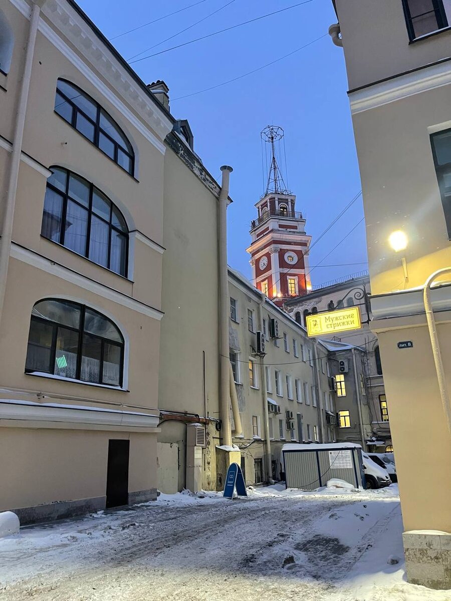 И ещё сюрприз: изнанка нашей башни на здании Городской Думы: видим её обычно с Невского или с Михайловской, а здесь она видно из двора, который за зданием находится. И здесь тоже люди живут 💫