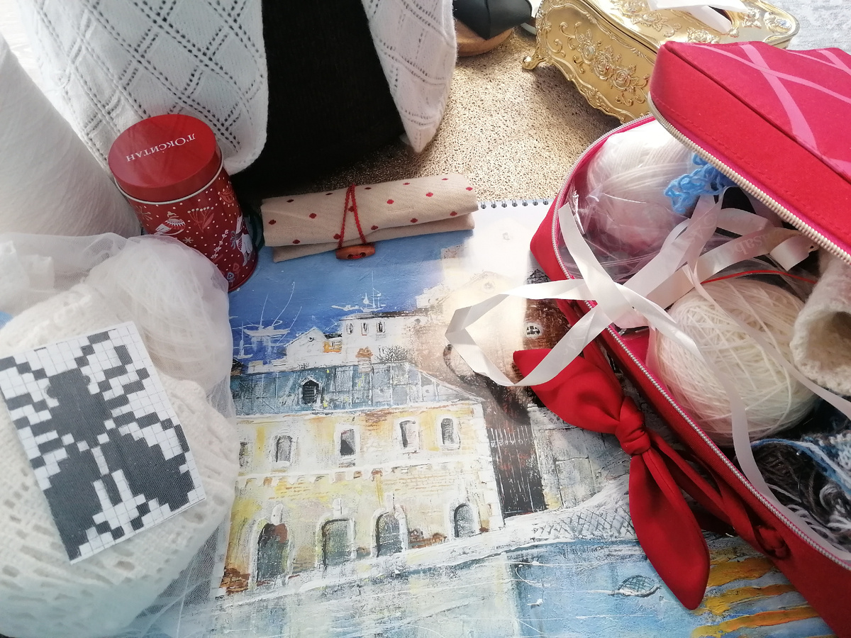 Вот и понеслось, а уже февраль... Или ещё февраль? Улыбнулась сама себе. И мотивационный календарь подсказывает - "Улыбнись сердцем". Итак, всё моё рукоделие, наконец-то, умещается на столе! В кои-то веки начинаю рассказ с Дела №1 - авторского джемпера "Мухи" (филейное вязание, крючок №2,0, бобинная "Лидия"). Реглан снизу, объединила вязание вкруг. 1 ряд - 1 час! Зато сдвинула, поставив задачу ежедневно провязывать хоть сколько-нибудь. Маркерами выделила основные зоны, пытаюсь исключить ошибки. Делом № 2 на этот раз стала реконструкция и переделки (наиболее понятно, конечно, станет, если посмотреть видео-сюжет, я приглашаю в конце статьи). Вторую аппликацию на детском джемпере также пришлось пристрочить - начала отходить от полотна. Сильно высокими температурами побоялась "прижаривать" (как полотно себя поведёт?), но и то, как приклеила, стало недостаточным. Так как уже разместила швейную машинку, решила сразу заняться давней задумкой. Большая простынь, очень нужная, но неудобная, дол