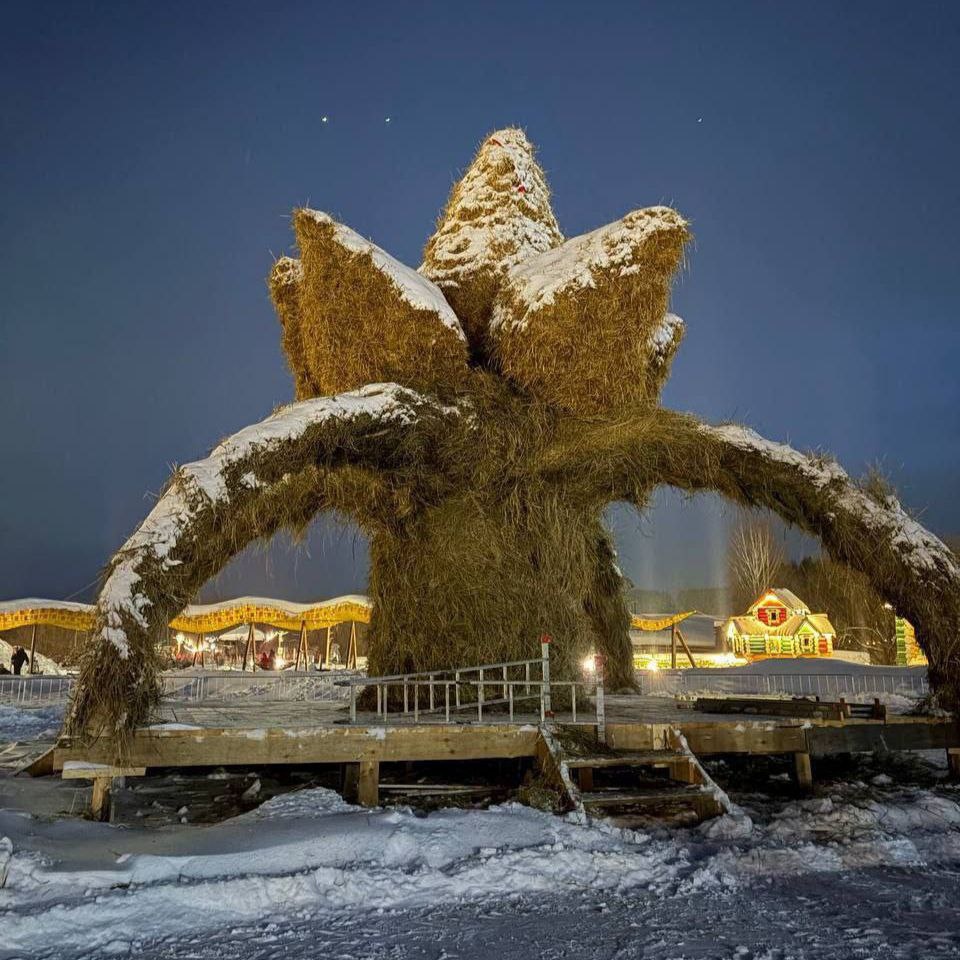 На строительство арт-объекта высотой 8 метров ушло 750 килограммов сена. «Каменный цветок» сожгут сегодня в 18:00. 📷 Фото предоставлено организатором 📱 Мы в MAX | 📱 Мы ВКонтакте