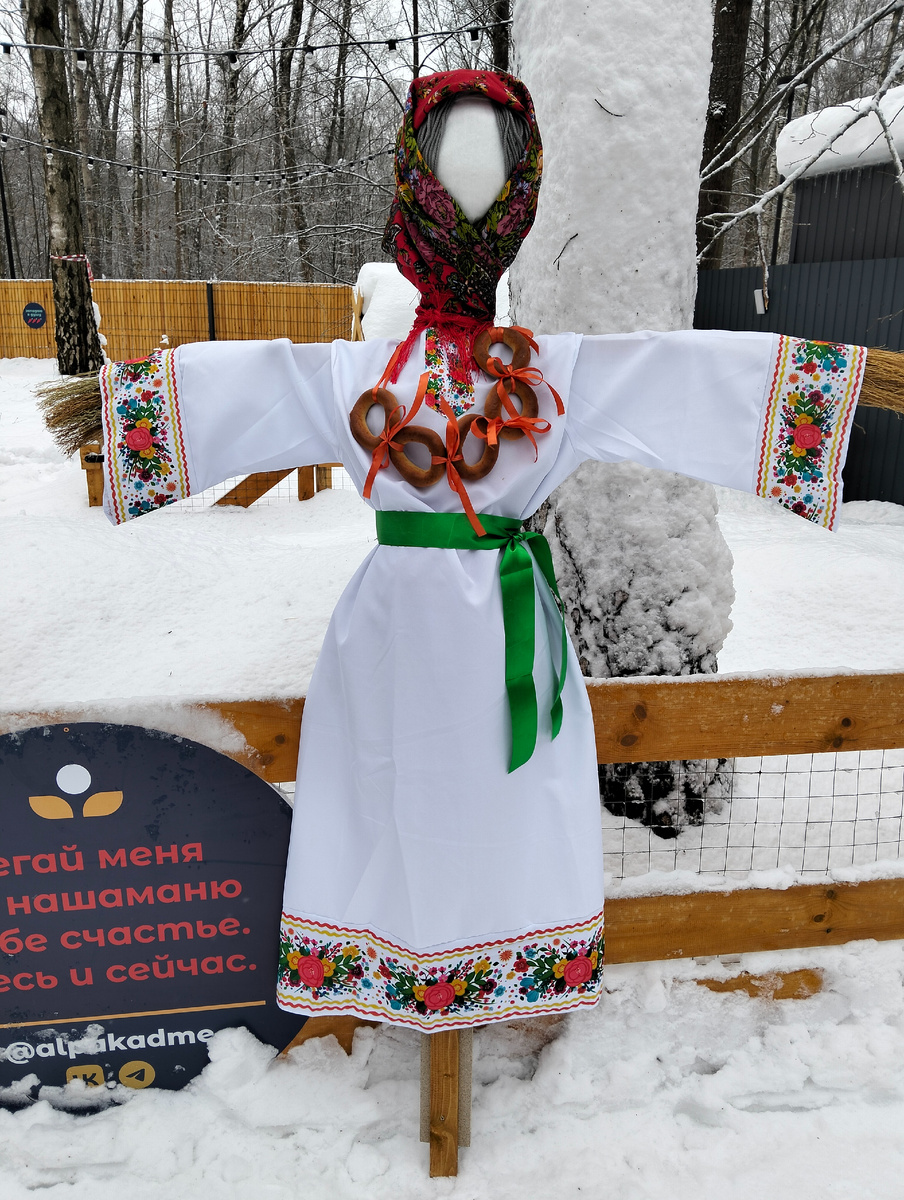 А какая красивая, яркая Масленица ожидает гостей под деревом!
