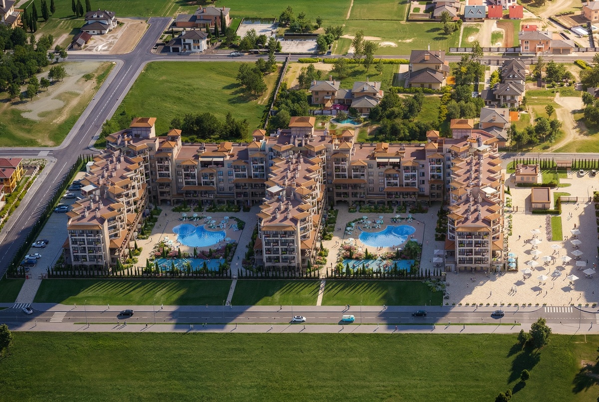 Сегодня у нас на повестке дня — жилая капсула счастья под названием Alba Del Mar в Евпатории. «Альба Дель мар» — это не про морских деликатесов, а про «рассвет у моря» (так говорят испанцы, когда не хотят платить за отель). Комплекс, между прочим, находится в новом районе возле озера Мойнаки, и это не просто так — оттуда до пляжа всего 10 минут пешком. Это меньше, чем у вас занимает поиск солнцезащитных очков, которые лежат у вас там же, где и прошлогодние надежды на покупку курортной недвижимости. А знаете, что ещё круто? Озеро скоро расцветёт: появится зона отдыха, набережная, пляж, спортивные площадки и, если повезёт, я там лично буду проводить мастер-классы по лежанию на солнце. Архитектура комплекса — сплошная Средиземноморская романтика: красная черепица, тёплый фасад, балконов столько, что мечта любого лукавого супруга! Создатели явно пытались передать дух Испании и знаете, у них получилось! Особенно, если под рукой есть бутылочка крымского вина и кусочек кубанского сыра — можно