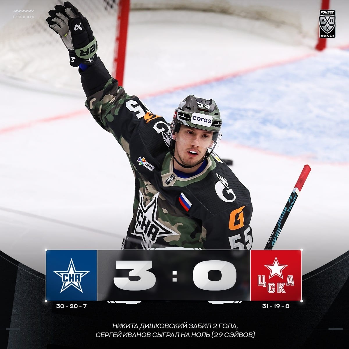 Дубль Никиты Дишковского принес СКА победу в армейском дерби!