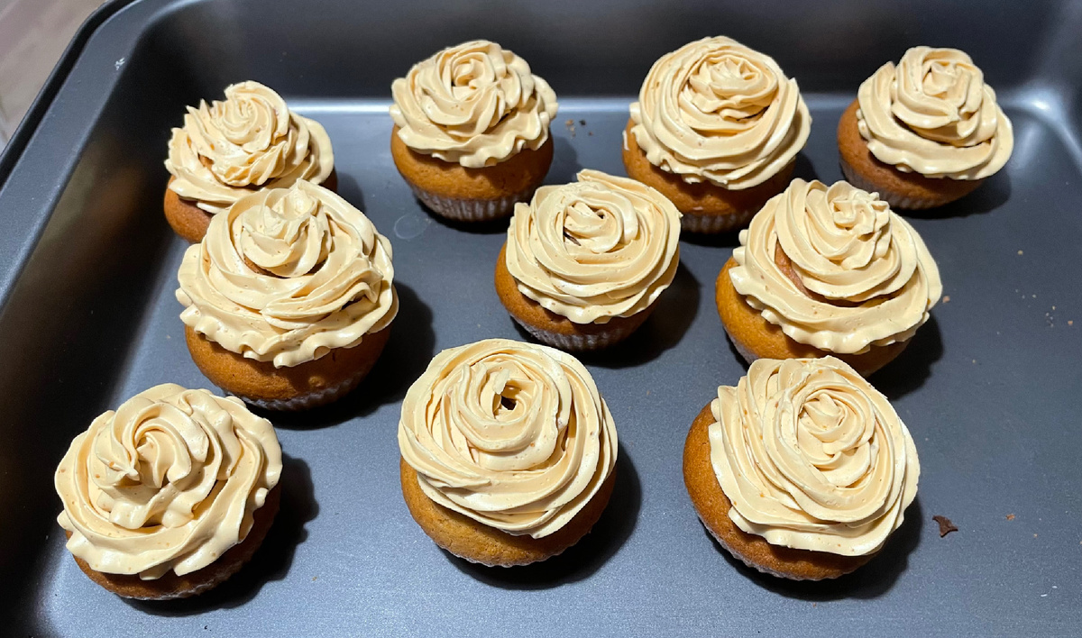 Сверху кексы можно украсить кремом или сахарной пудрой.