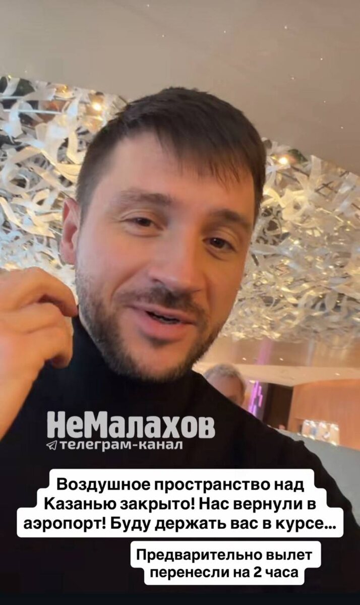 Сережа Лазарев пытался улететь в Казань, но рейс отменили, пришлось покупать новый билет. 70-килограммовая Аннушка Семенович - в Набережные Челны. Пока ждала отправки, съела в зале ожидания всё, что не приколочено