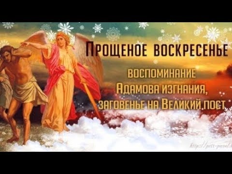 — Прощёное воскресенье – последнее воскресенье накануне Великого поста имеет три названия: Неделя сыропустная (сырная), Адамово изгнание и Прощеное воскресенье. Первые два названия встречаются в богослужебных книгах (Триоди и Типиконе), тогда как именование «Прощеное воскресенье» – исключительно обиходное и употребляется только в православном быту.