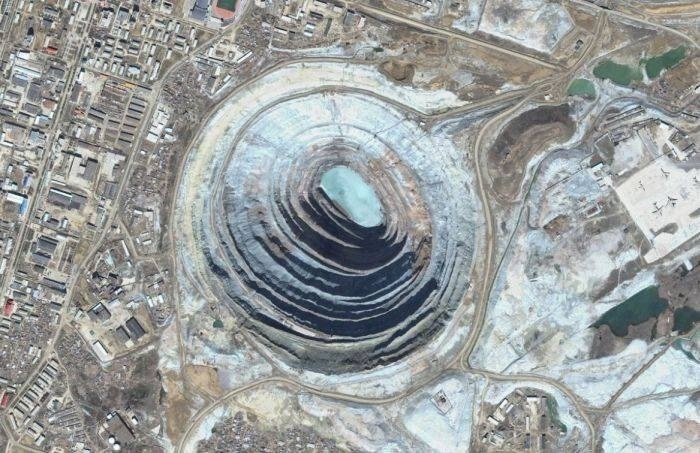 Глубина карьера составляет 525 метров, диаметр — 1,2 километра. Карьер выглядит выпуклым, в виде горы, хотя на самом деле все наоборот. Терра инкогнита | Неизвестная земля
