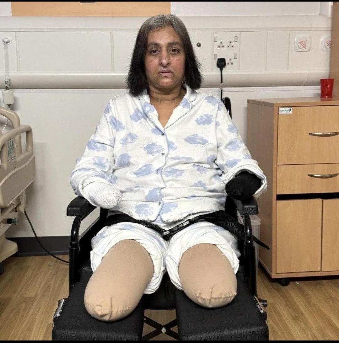 Манджит Санга, 52 года, проживающая в Соединённом Королевстве, была госпитализирована по причине тяжёлого инфекционного заболевания – сепсиса, возникшего предположительно от проникновения бактериальной флоры через незначительную рану на руке при контакте со слюной собаки. В течение суток после начала симптомов
