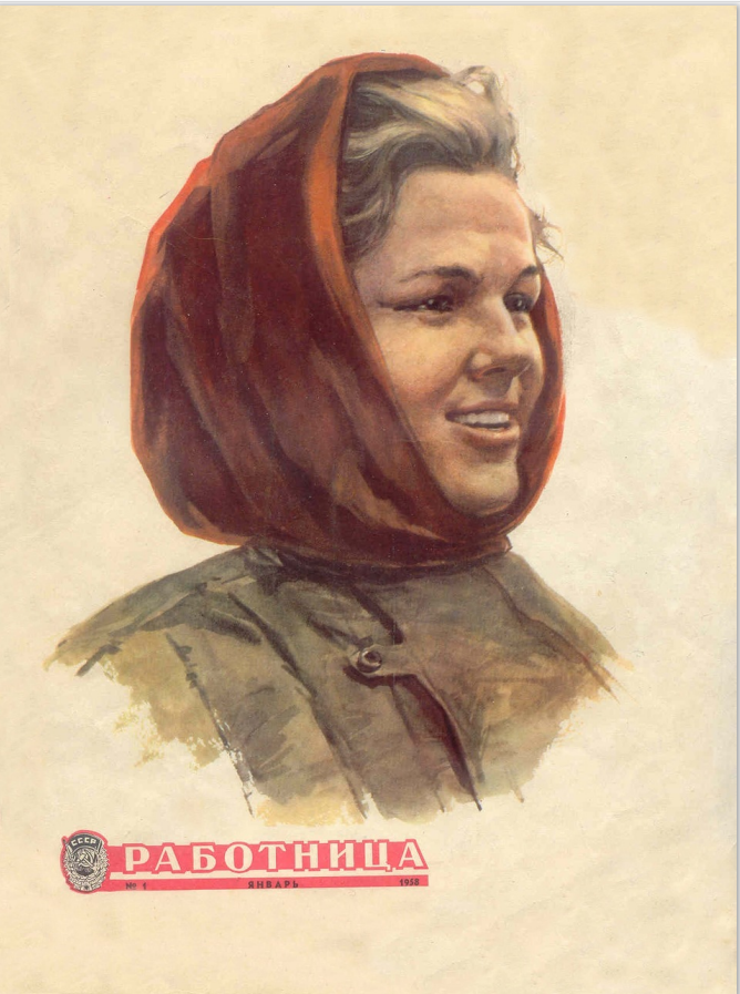 Этот год сохранился очень плохо, собрать все номера не удается, поэтому у нас с вами будет 4 номера. Да и в них рецепты лильв одном. Но для полноты картины, пускай будут! В январском номере рецептов нет, но мы с вами посмотрим картины. Посмотрите на картину Виктора Артамонова (1957) «К новым берегам», справа на ящике разложена нехитрая снедь: огурец, хлеб, что-то красное, помидор или яблоко. Куда переезжают эти люди? На целину. Окно с гиппеаструмом и шторой-задергушкой, наверное, каждый из нас хоть раз такое видел. А на шторе, посмотрите, вышивка ришелье. Тут у нас яблони в цвету! И больше из этого номера ничего не будет, он сильно пострадал, весь изрезанный. На обложке строительница Н. Любеля, строит она город Рудный — это город на реке Тобол в Костанайской области Казахстана. На тот момент городу меньше года, ведь статус города получен в 1957 году, а возник он из поселка, образованного в 1955 году, в связи с освоением железорудного месторождения и строительством Соколовско-Сарбайск