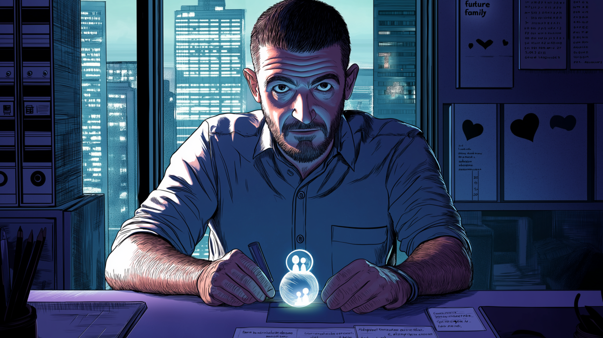 Сцена из офиса. Созвон в семь вечера, кто‑то тяжело выдыхает в микрофон. Начальник бодро говорит про «долгосрочные цели», связь шуршит. В чате — мемы и сухие «ок». Мужчине 29. Он снимает студию, ипотека пока недоступна, график — размытый. Его спрашивают: «Ну что, когда уже?» Он улыбается. Смеётся коротко, не глазами.