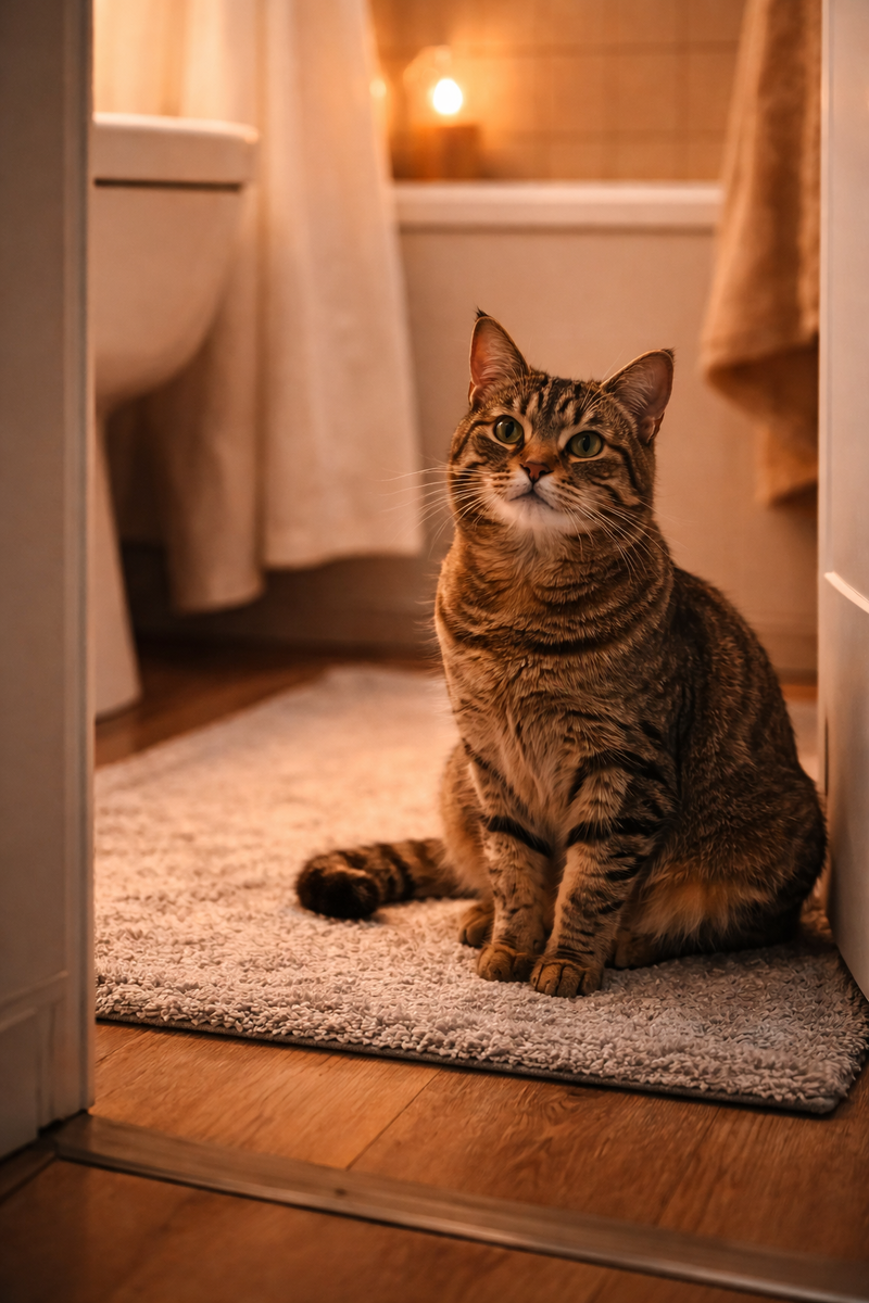 Вы закрываете дверь. Включаете воду. Думаете, что это ваше личное пространство. Но через несколько секунд снаружи слышится тихое поскрябывание или появляется внимательный взгляд из щели.