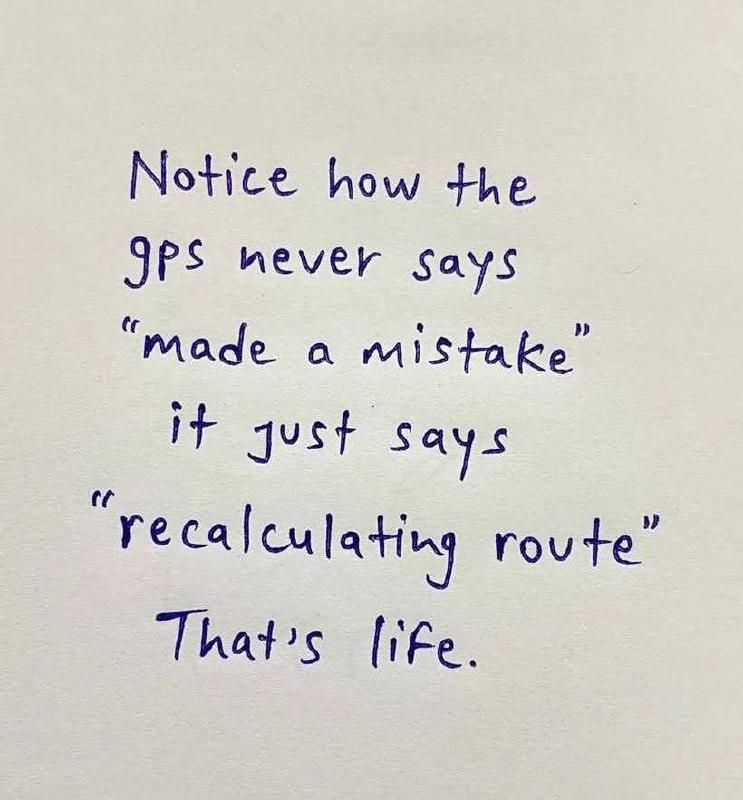 Заметь, GPS никогда не говорит 'я ошибся', он просто говорит 'пересчёт маршрута