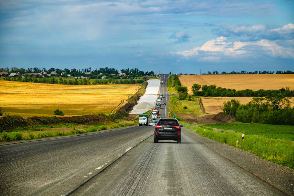 Это не какая-то временная объездная дорога, а настоящая федеральная магистраль, которую активно доводят до ума. На карте выглядит как красивое полукольцо вокруг Азовского моря — идеально для тех, кто хочет разнообразия.