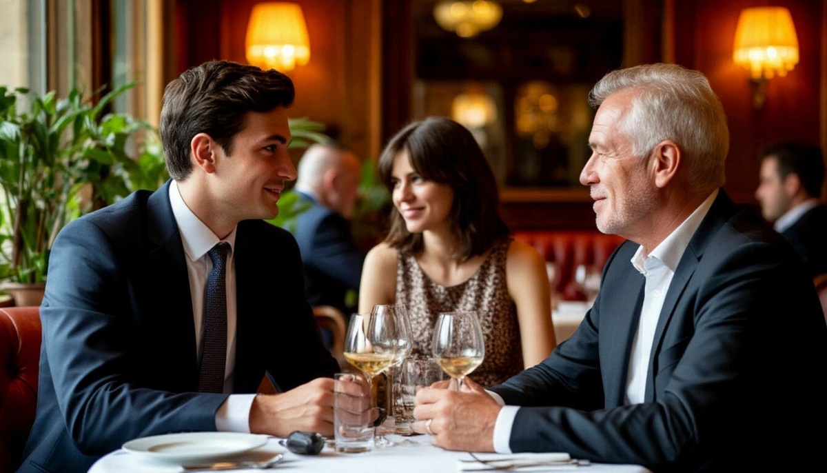 Они прошли в зал. Ресторан поражал роскошью: хрустальные люстры, живые орхидеи на каждом столе, тихая джазовая музыка, создающая атмосферу исключительности. Официанты скользили между столами бесшумно, словно тени. Андрей сразу же направился к дальнему столику у окна, где уже сидел мужчина. Виктор Сергеевич Громов выглядел именно так, как представляла его Елена: властный, уверенный в себе, с жесткими чертами лица и пронзительным взглядом. Ему было около пятидесяти, но держался он с такой энергией, что казался моложе.