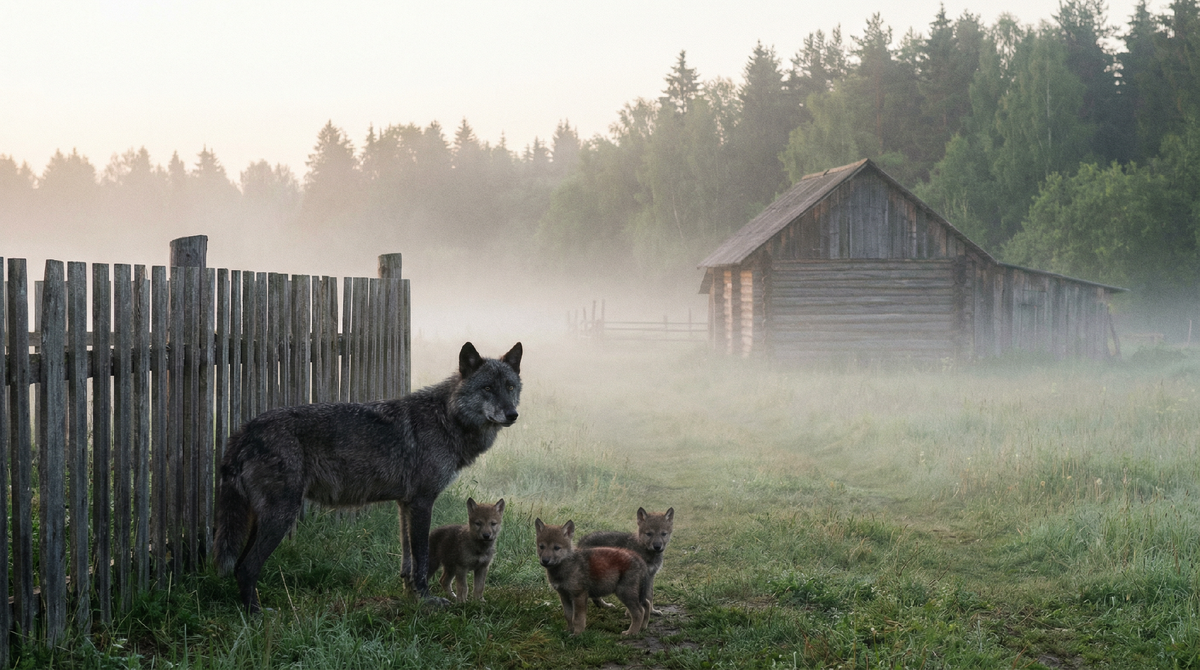 Я увидел её в шесть утра. Туман ещё лежал над полем, и деревня Каменка спала – ни дыма из труб, ни собачьего лая. Я вышел на крыльцо проверить капусту в парнике, а она стояла в тридцати метрах от забора. Волчица. Крупная, тёмно-серая, с подпалинами вдоль рёбер. И не одна.